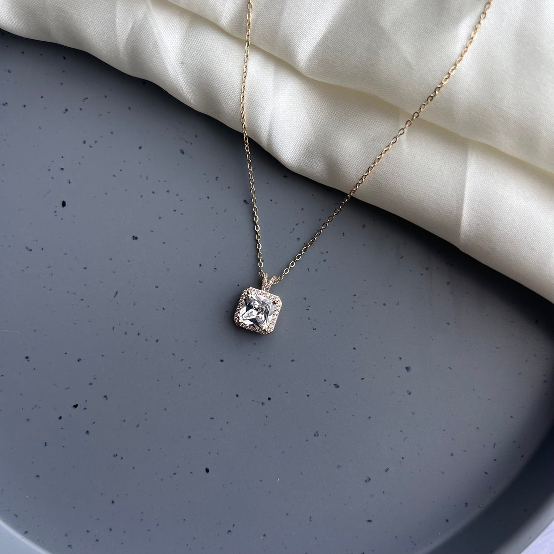 SQUARE SOLITAIRE CHAIN - 18K Gold Plated