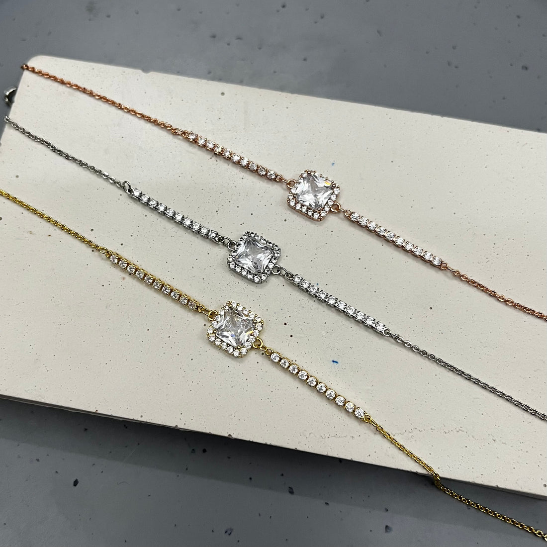 STONE-STUDDED RECTANGLE TENNIS BRACELET
