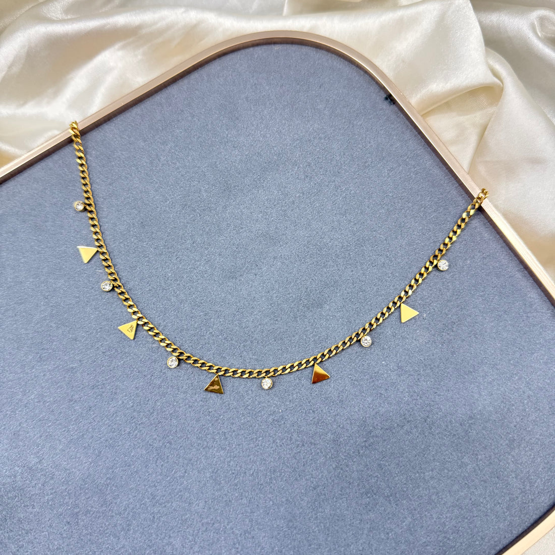 This beautiful Tringle and Crystal Charm Necklace is crafted with high-quality and features a elegant...