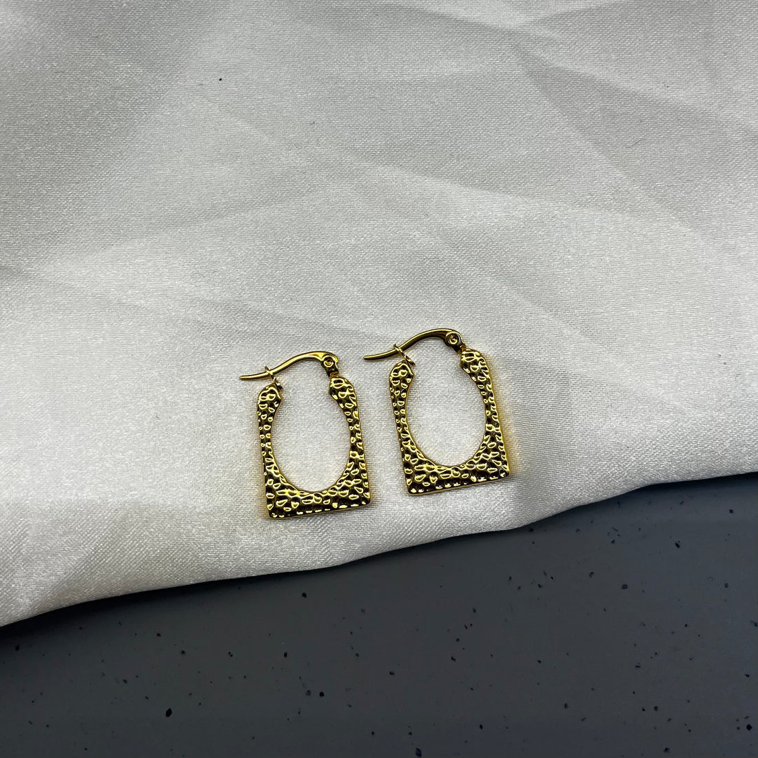 Introducing our textured rectangle Loop Earrings, a stunning addition to elevate your accessory collection. Crafted...