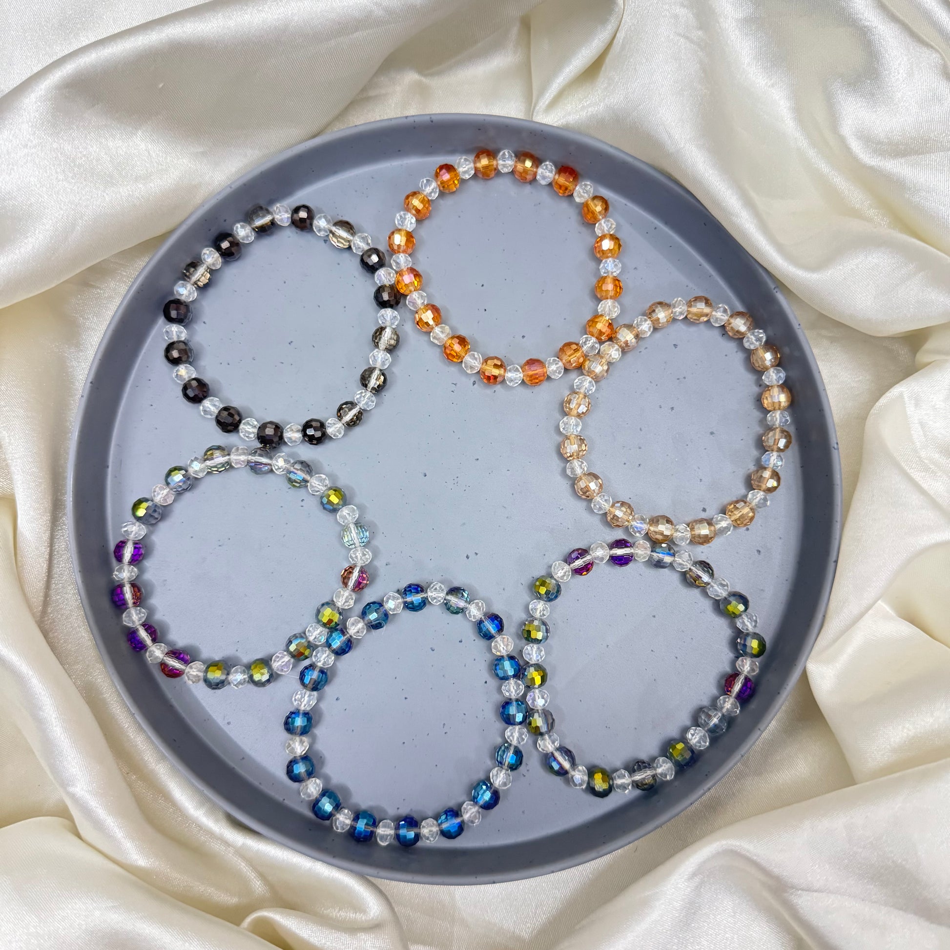 Our Crystal Bead Bracelets are beautifully crafted with high-quality beads, available in a variety of colors and styles. Designed as free size for a comfortable fit, they add a touch of elegance to any outfit. Perfect for layering or wearing solo, these versatile bracelets make a great addition to your collection