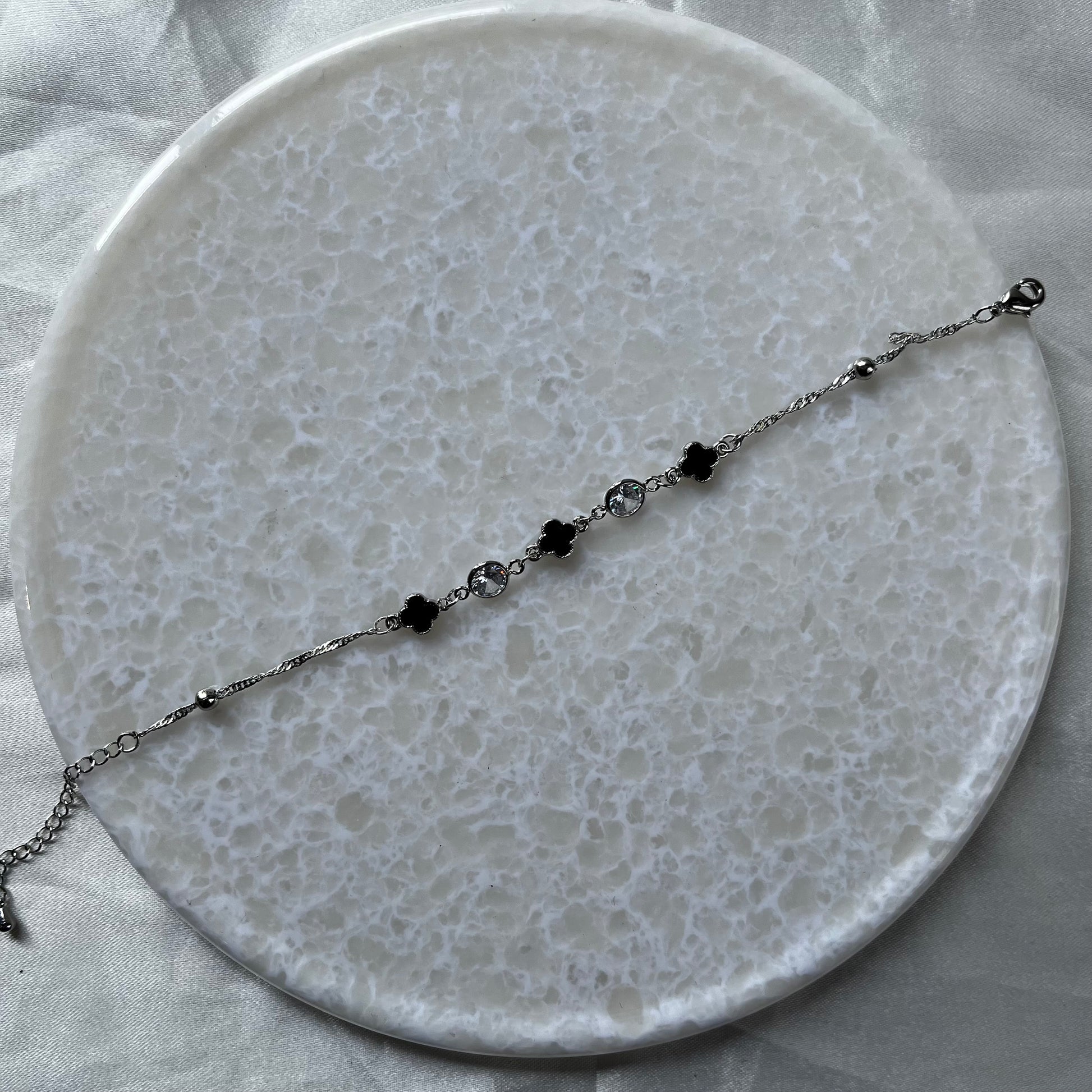 Introducing our stunning black clover silver chain Bracelet, a dazzling accessory that effortlessly combines elegance and style. Each diamond is meticulously placed in a unique pattern, creating a captivating design that sparkles beautifully.