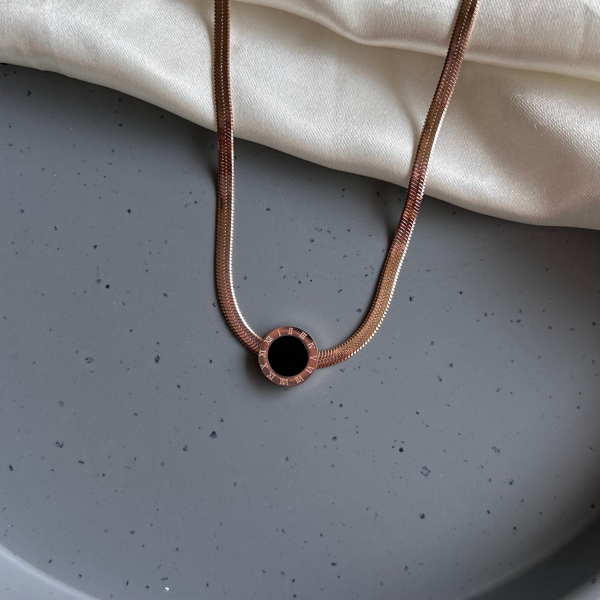 BLACK SHELL ROMAN NUMERALS SNAKE CHAIN