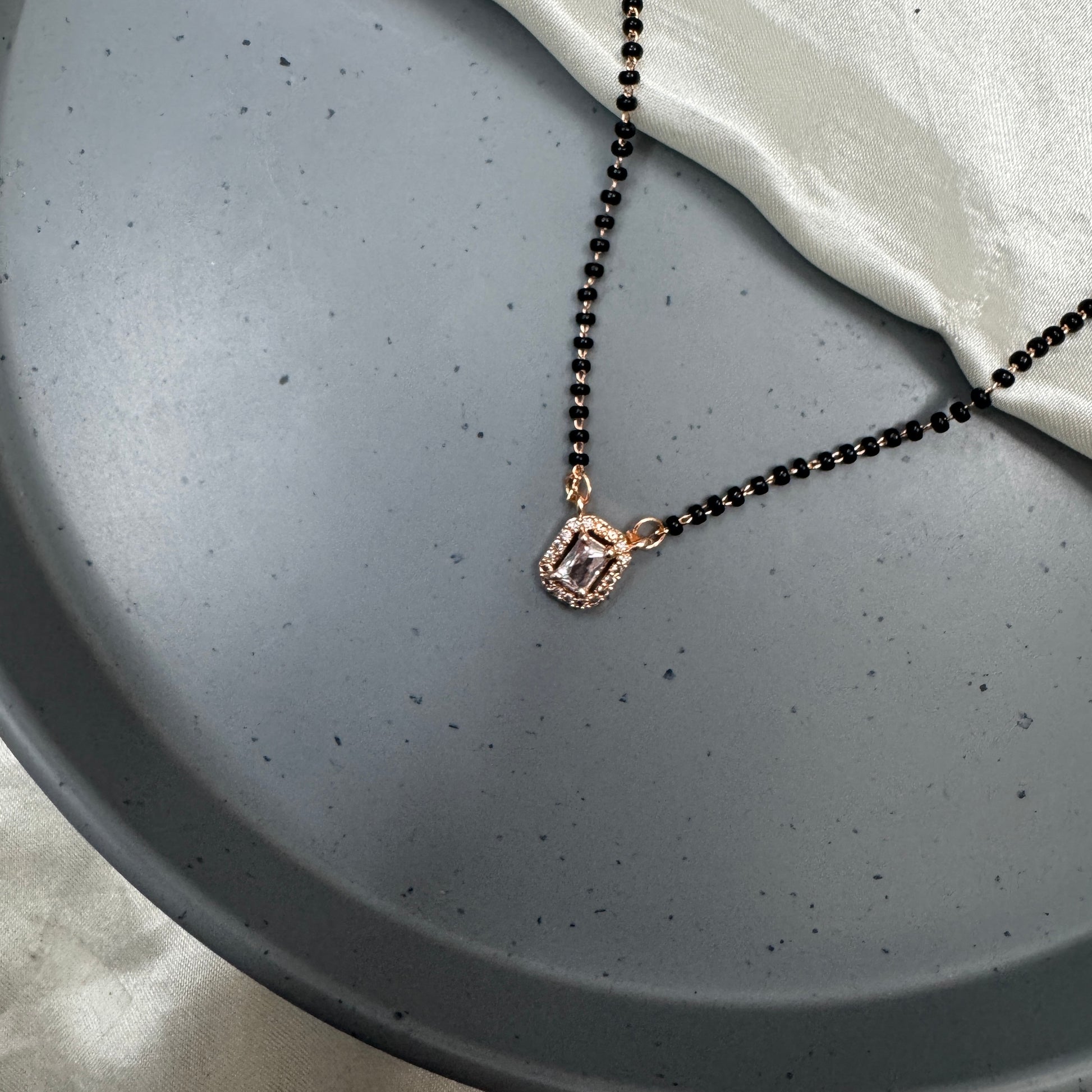 Presenting our contemporary Ena Mangalsutra, where tradition meets modern elegance. Featuring minimal black beads and a sleek, unique pendant, this gold-colored masterpiece offers the perfect blend of sophistication and style. Ideal for weddings or adding a stylish touch to any outfit, this Mangalsutra seamlessly merges heritage with a contemporary twist.