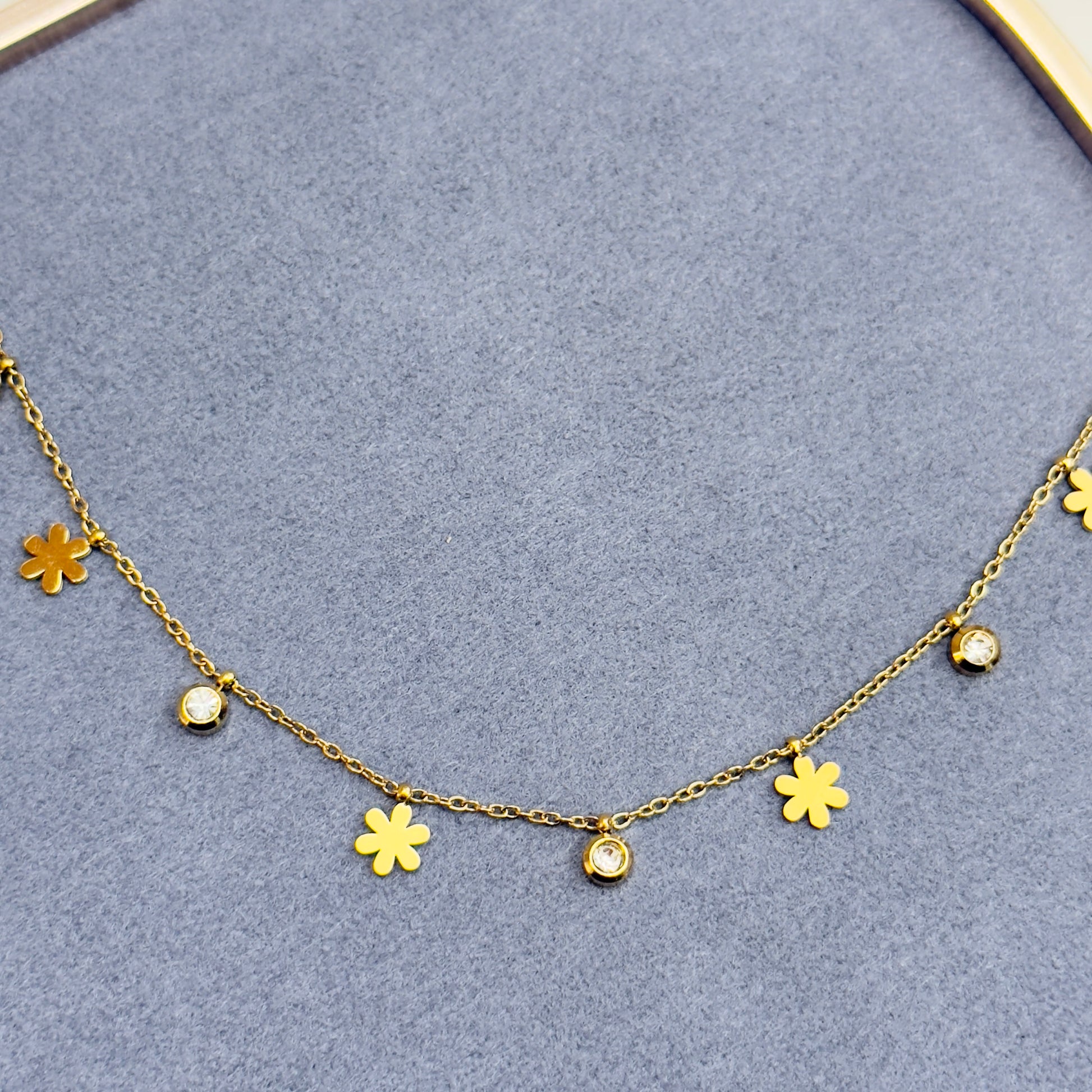 FLOWER AND CRYSTAL CHARM NECKLACE
