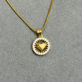 Let your heart shine at the center of it all. The Middle of Heart Necklace features a radiant sunburst heart design enclosed in a sparkling circular frame — symbolizing warmth, love, and inner light.