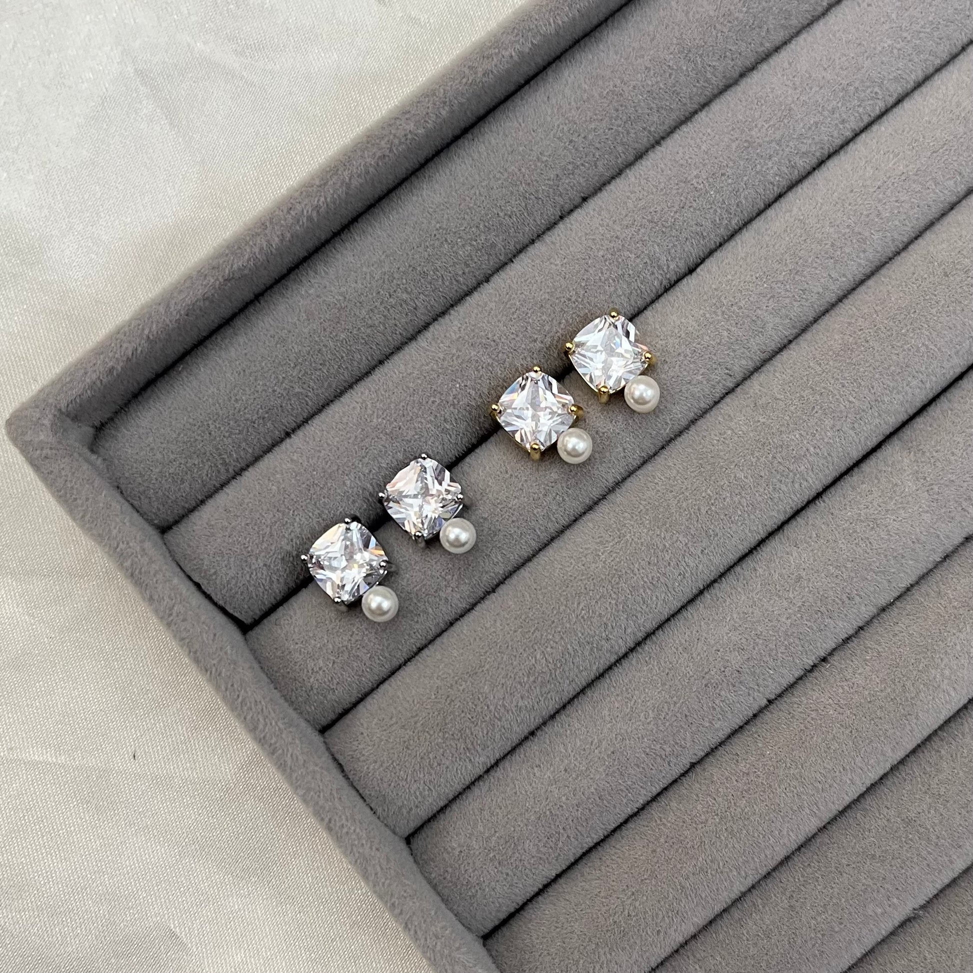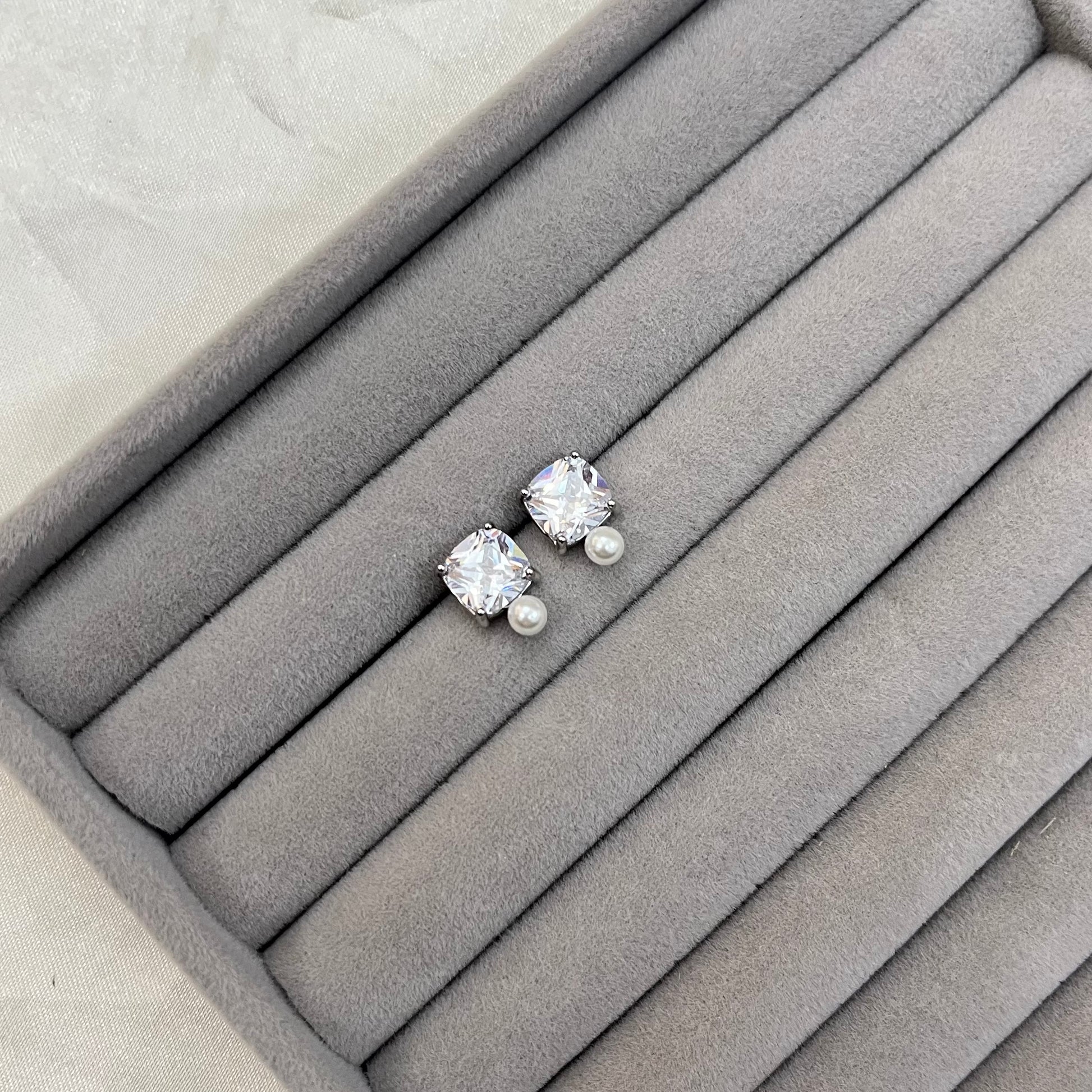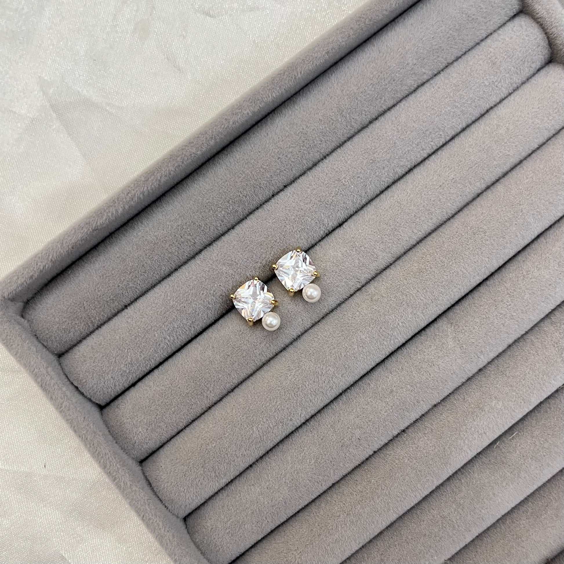 PEARL SQUARE STUD EARRINGS