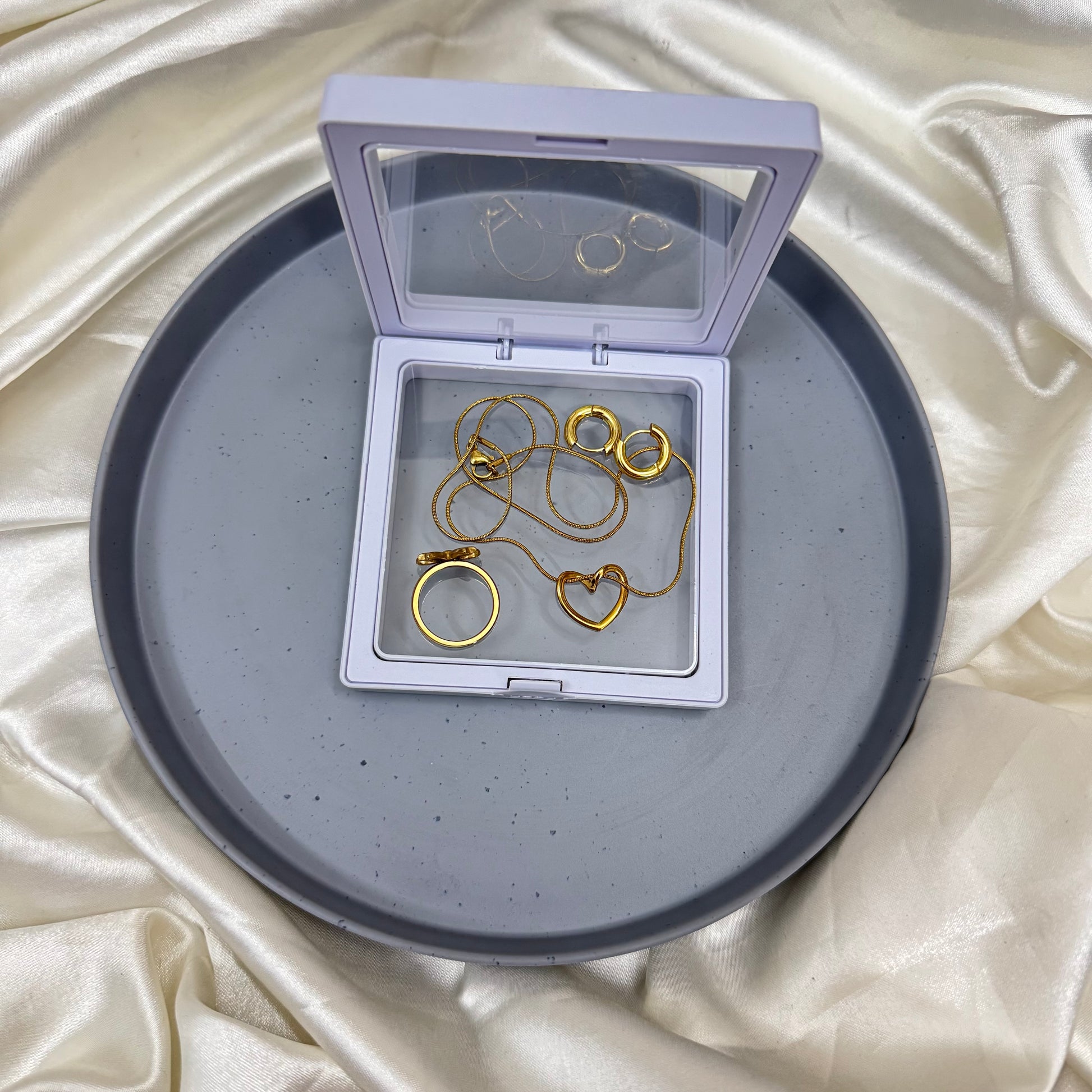 This transparent jewelry storage box is designed to securely hold your jewelry while offering a clear view of its contents. It is built with durability in mind, ensuring that even larger items placed inside will remain safe and undamaged, with no risk of tearing or distortion. Perfect for organizing and protecting your precious pieces, this sturdy box combines both functionality and strength.