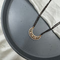 Presenting our contemporary sparkling trinity of hearts Mangalsutra, where tradition meets modern elegance. Featuring minimal black beads and a sleek, unique pendant, this gold-colored masterpiece offers the perfect blend of sophistication and style. Ideal for weddings or adding a stylish touch to any outfit, this Mangalsutra seamlessly merges heritage with a contemporary twist.