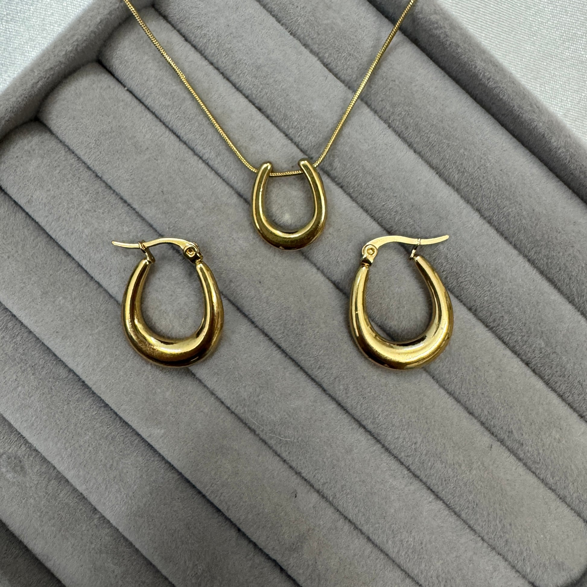 This stunning set includes two matching pieces: an elegant earring and a beautiful necklace, both crafted from high-quality materials to enhance your style.