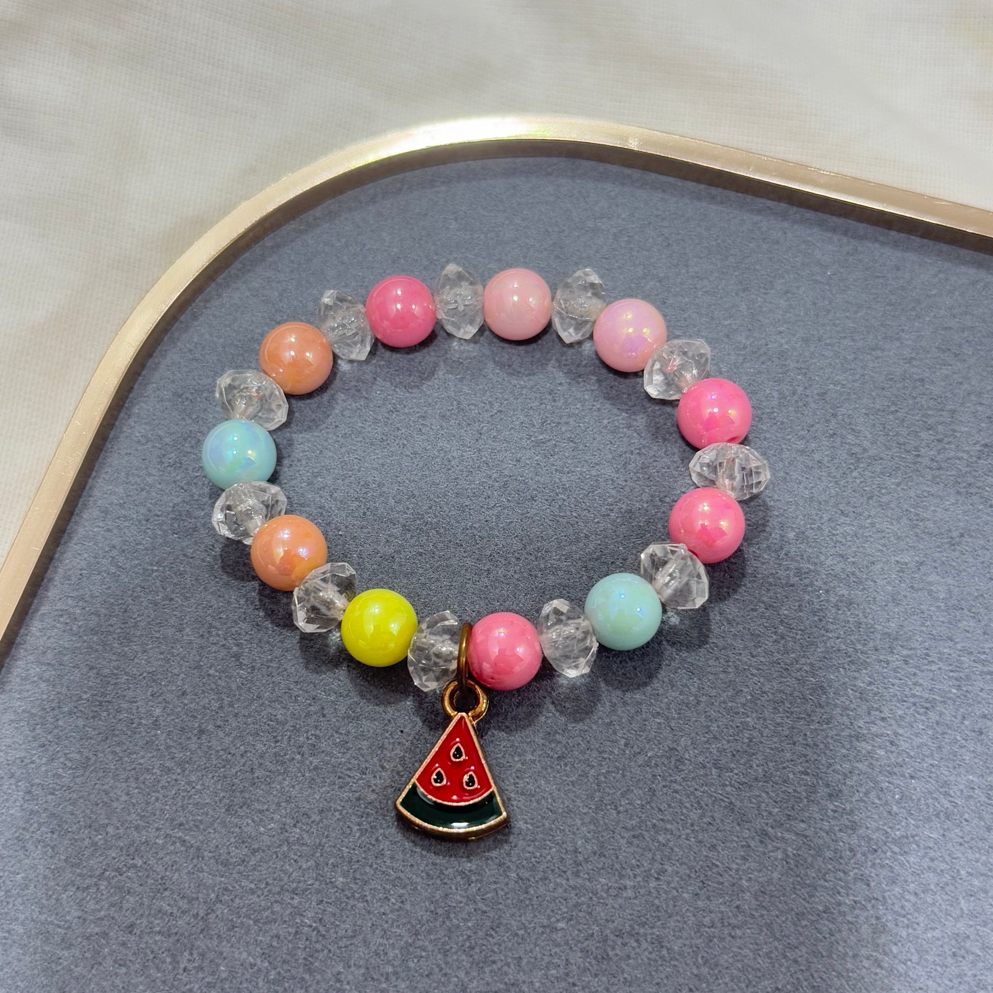 WATERMELON CHARM CRYSTAL BEADS BRACELET